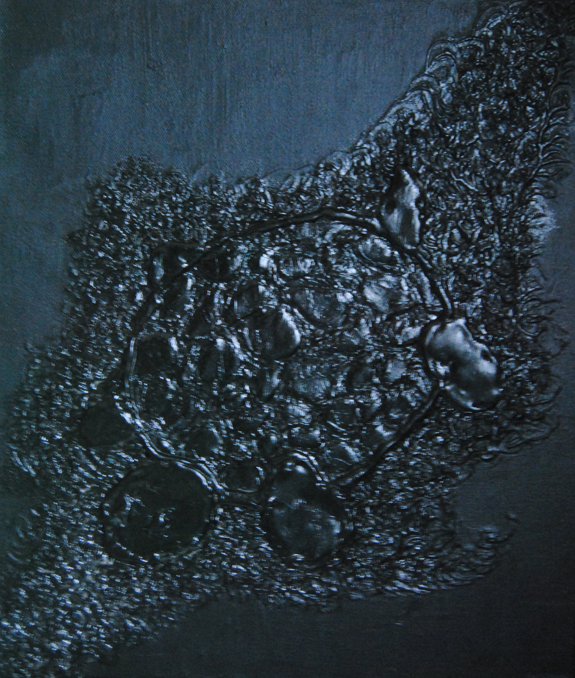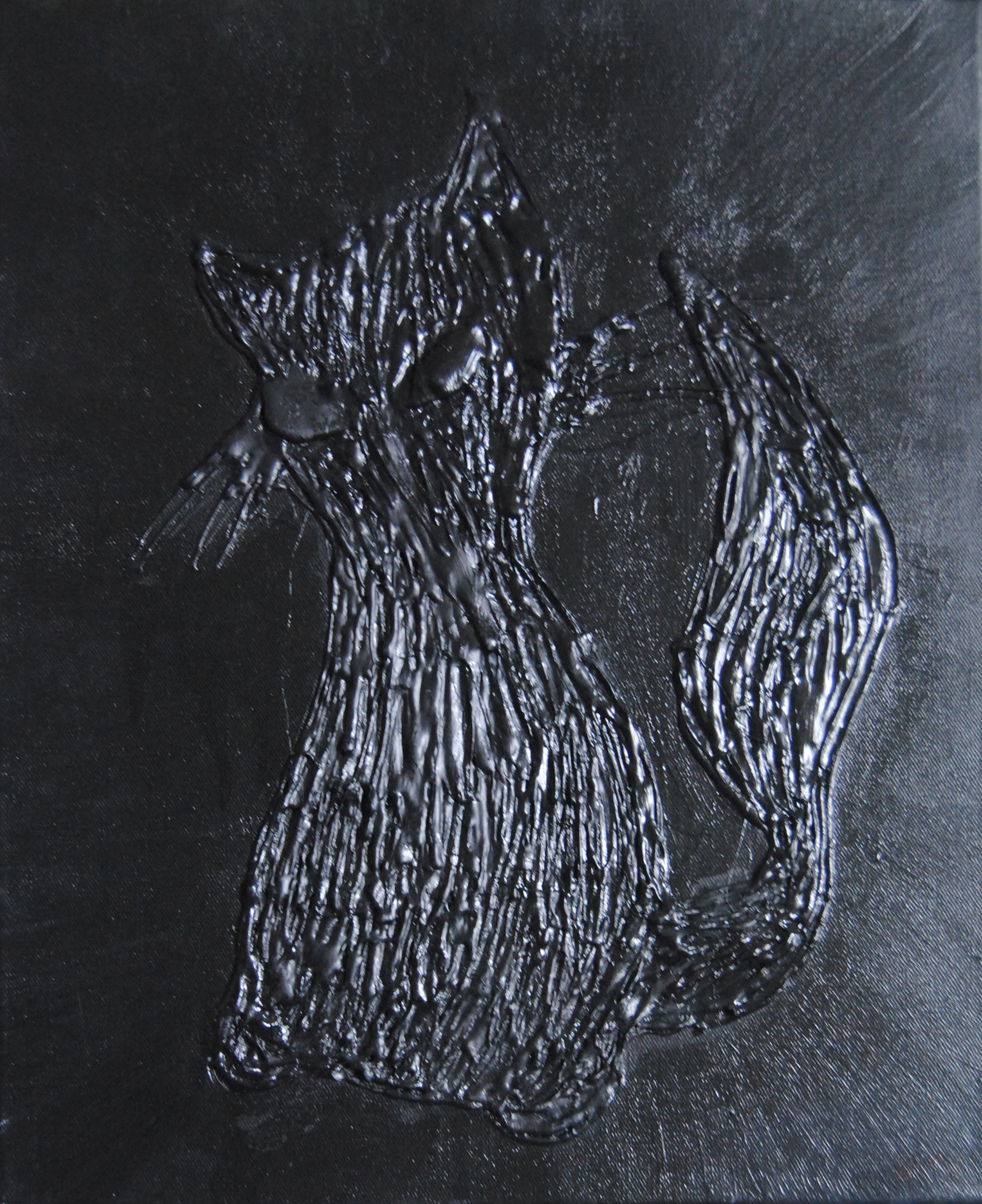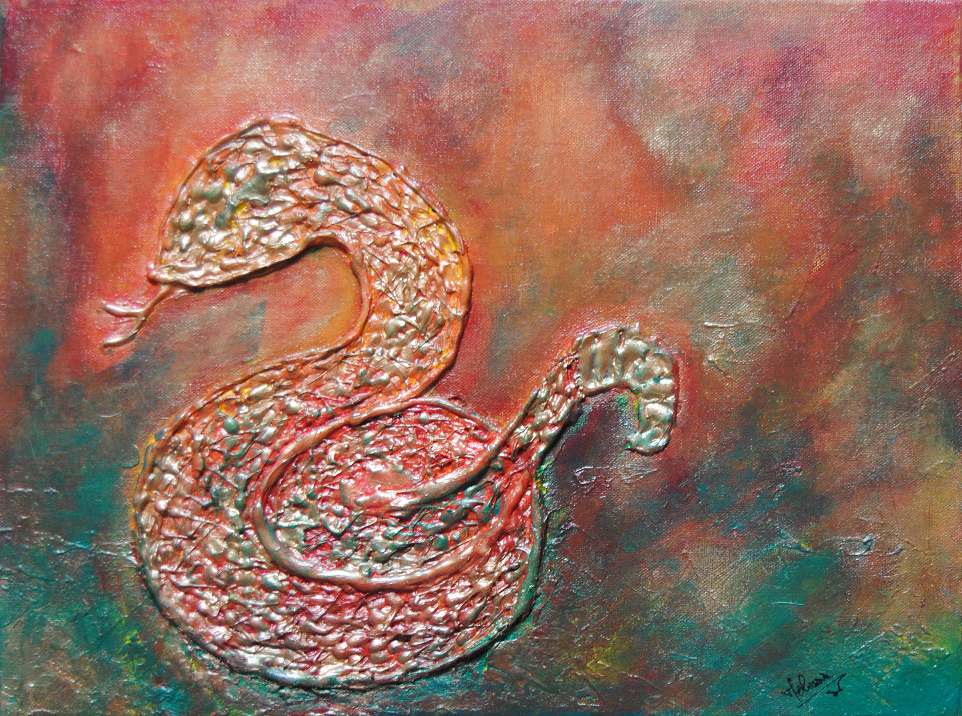 Peinture Acrylique sur toile en coton ou en lin avec bas relief en pistolet à colle.