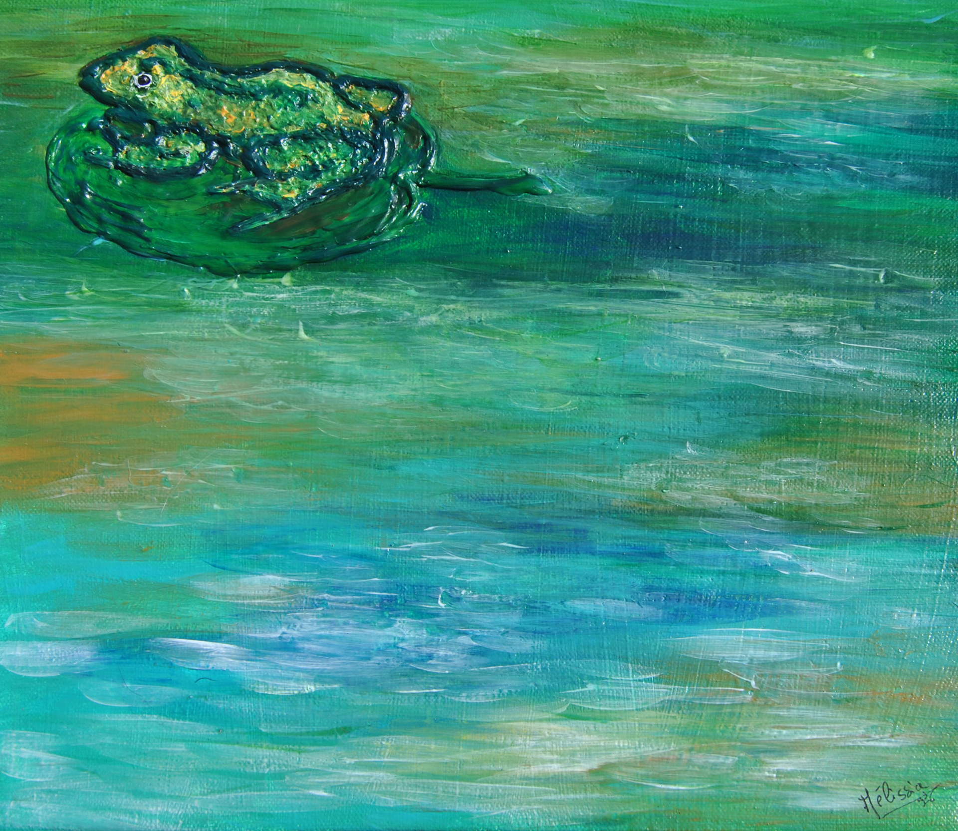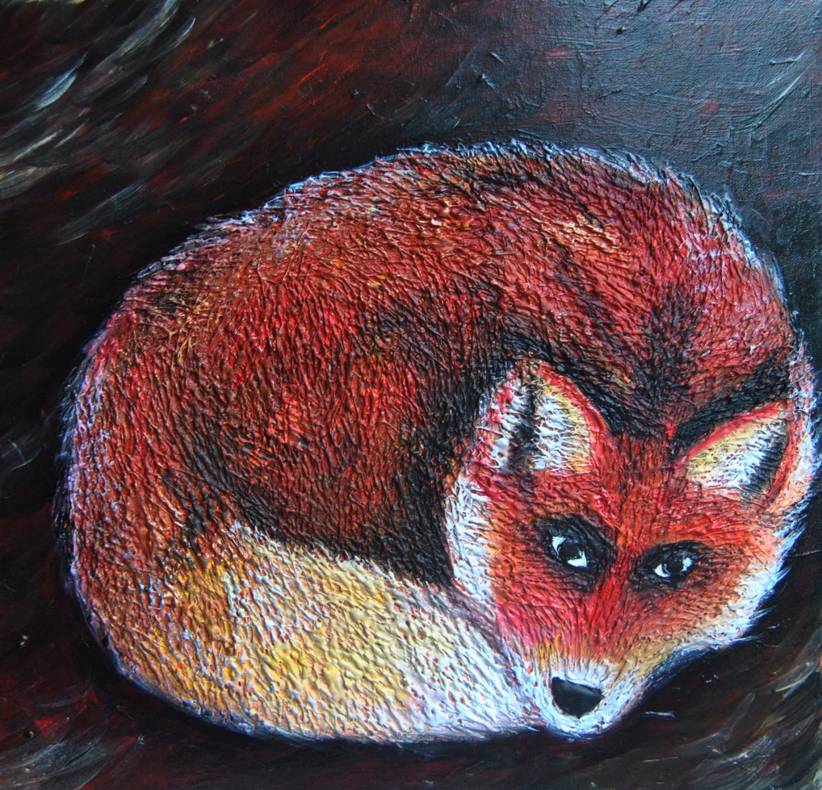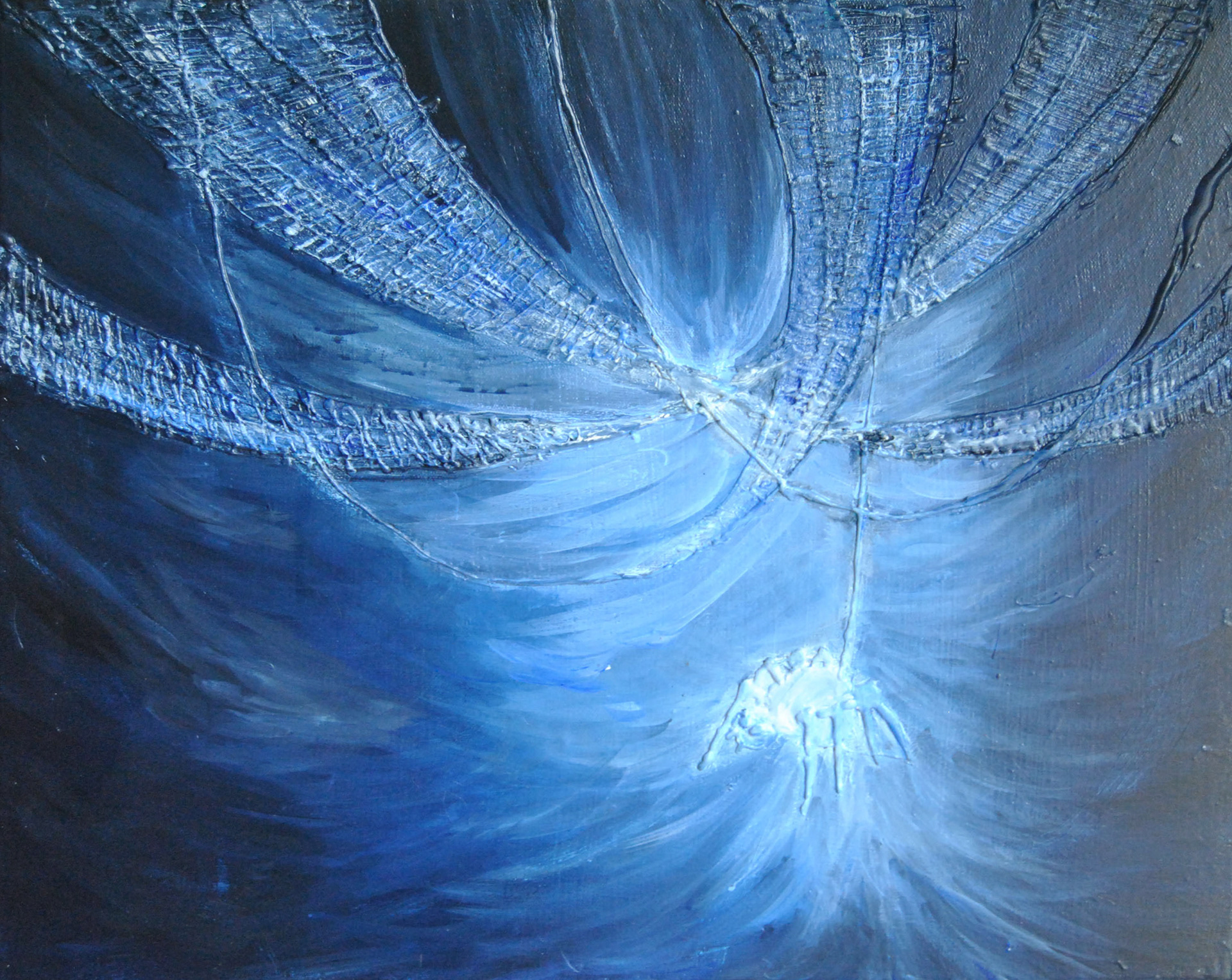 Peinture Acrylique sur toile en coton ou en lin avec bas relief en pistolet à colle.